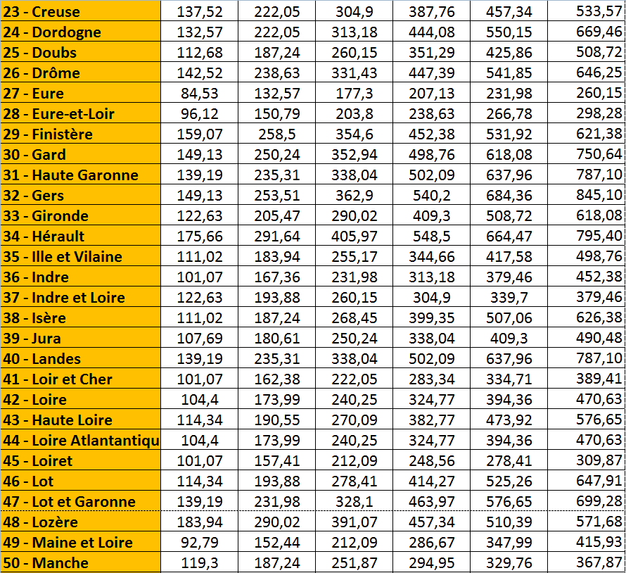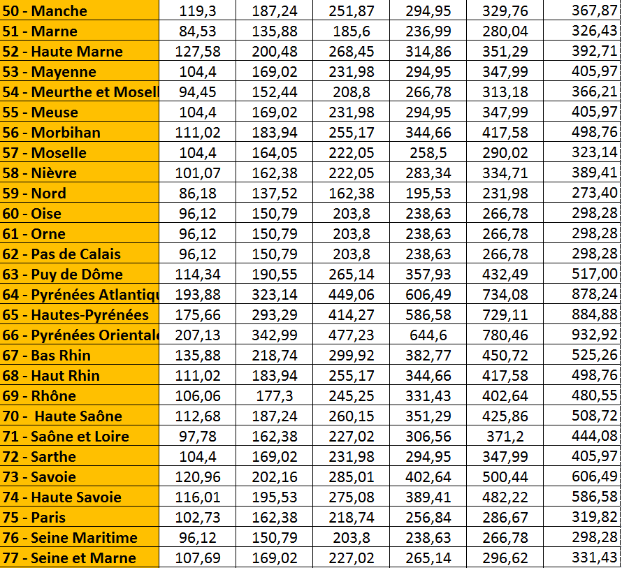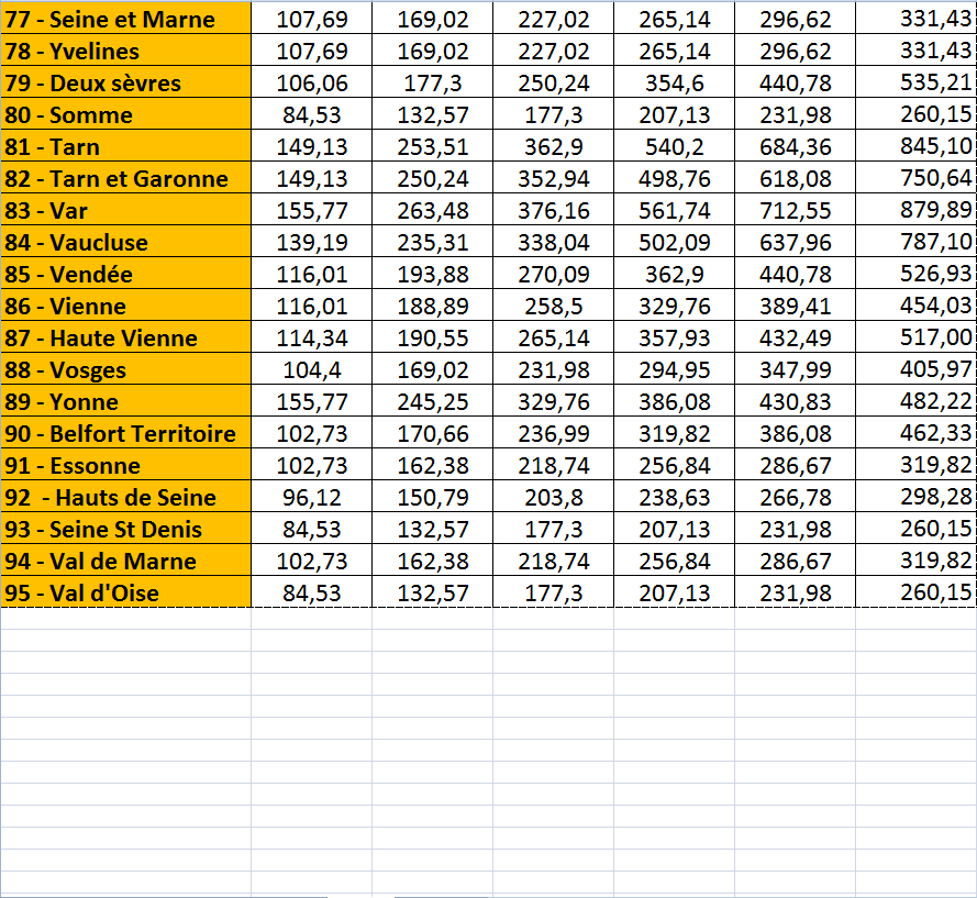 | France métrople (sauf Corse) |